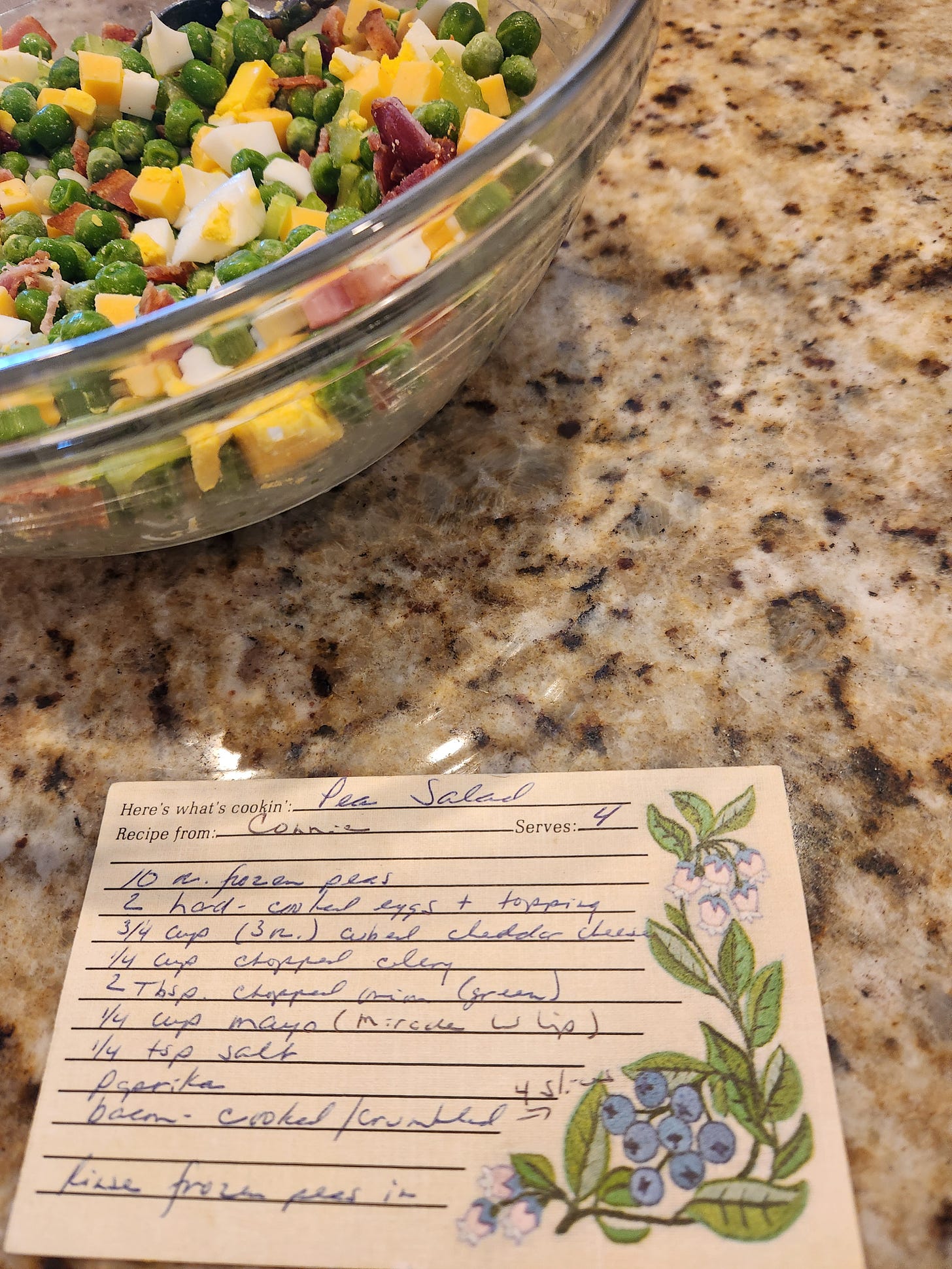 That's an amazing photo of pea salad, Connie! What kind of camera/phone are you using? I'm jealous. I haven't taken a photo that good in ages. Did Andy Lyons come over to your house or something?